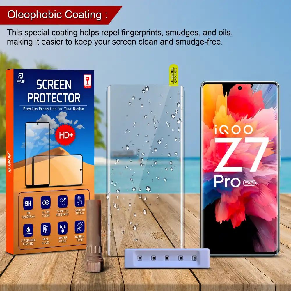FAVJIP® Tempered glass screen protectors feature an oleophobic coating. This special coating helps repel fingerprints, smudges, and oils, making it easier to keep your screen clean and smudge-free. It also allows for effortless wiping and cleaning.