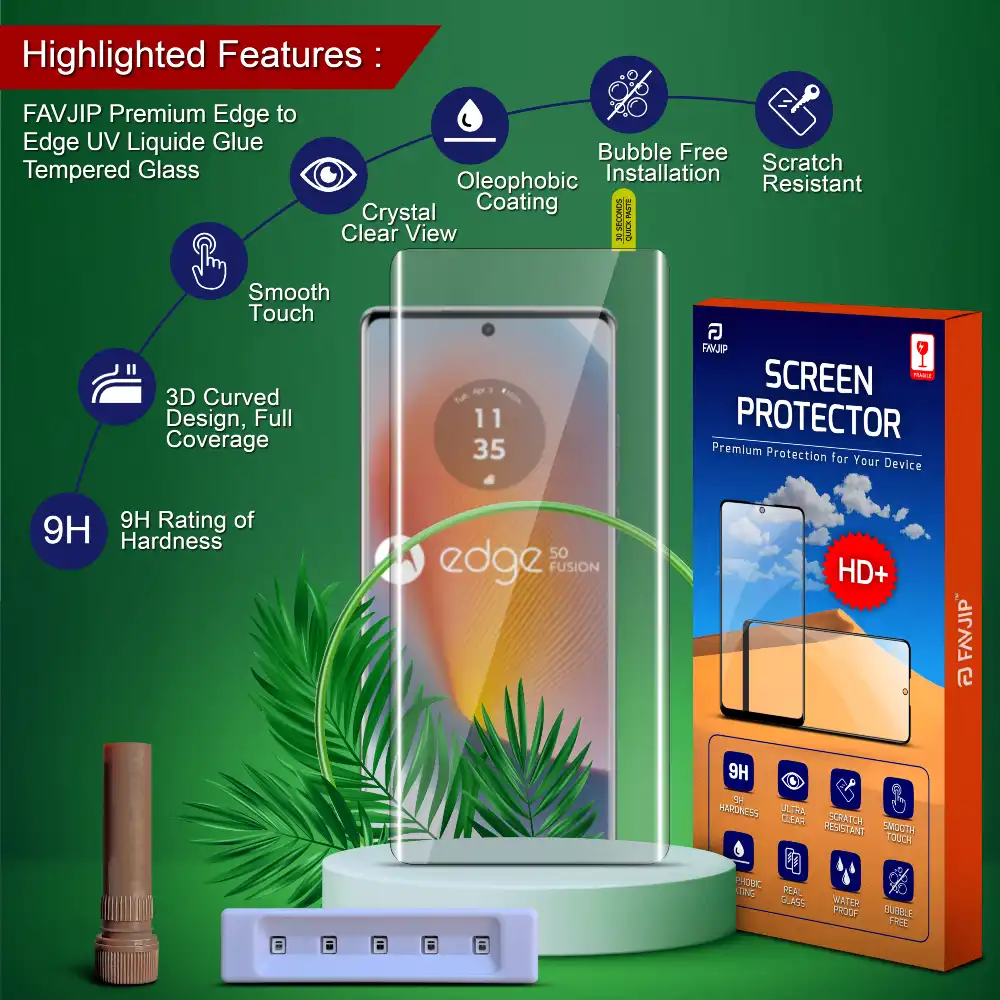FAVJIP® 3D Curved Tempered Glass for Moto Edge 50 Fusion – Pack of 1