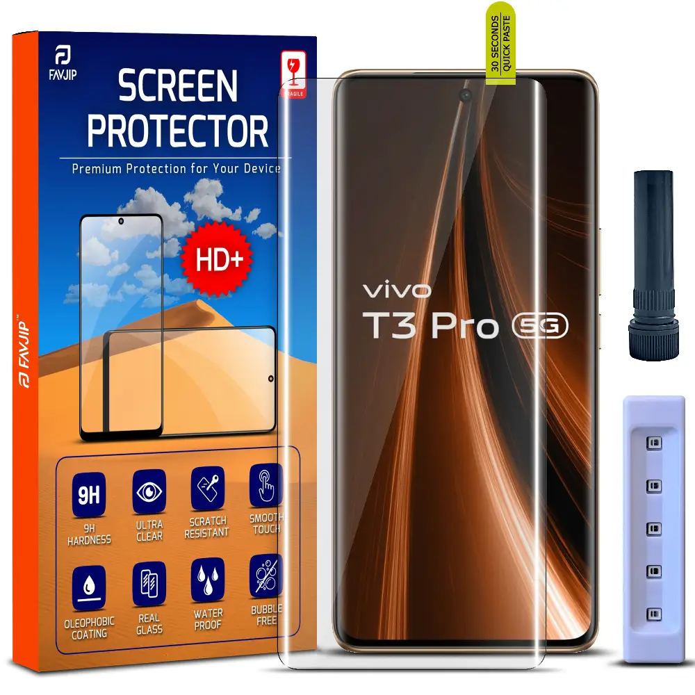 FAVJIP Edge to Edge 3D Curved Tempered Glass Screen Protector for Vivo T3 Pro 5G with Easy Installation Kit – Pack of 1