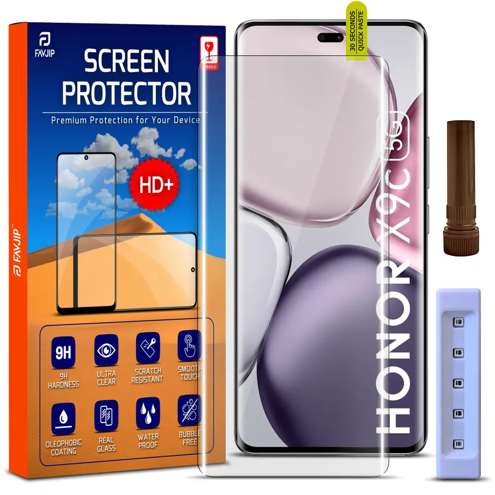 FAVJIP Edge to Edge UV Liquid Glue 3D Curved Tempered Glass Screen Guard Protector for Honor X9c 5G with Easy Installation Kit – Pack of 1